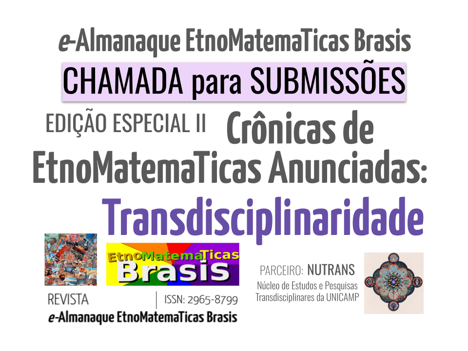 Por favor, confira a chamada para submissão de trabalhos para a Edição Especial II – Crônicas de EtnoMatemaTicas Anunciadas: Transdisciplinaridade da revista e-Almanaque EtnoMatemaTicas Brasis: